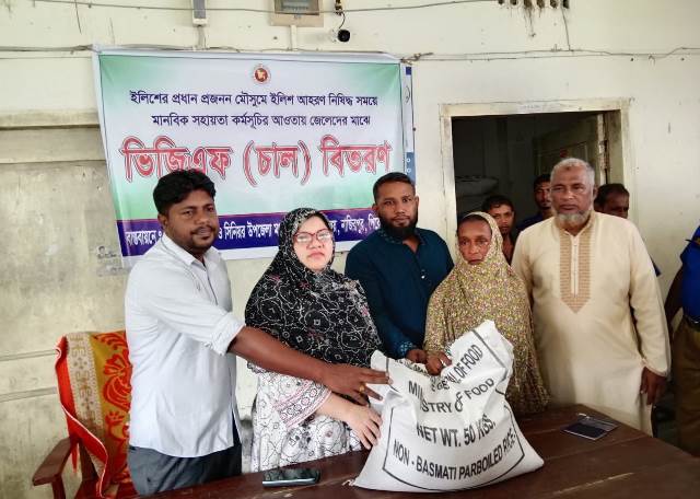 নাজিরপুরে ভিজিএফ চাল বিতরণে নির্বাহী কর্মকর্তা (ইউএনও)